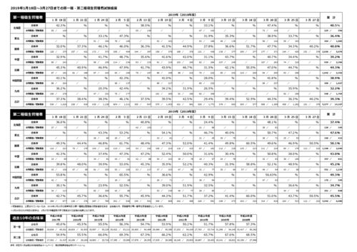 現在公表されている2019年1月18日受験の合格者が上の画像です。 (東北は試験なかったようです) 各センターの受験者数は分かりませんが、合格者の番号で一番数字の大きな番号を受験者数とした場合、以下のとおりとなります。 (合格者数/受験者数※…